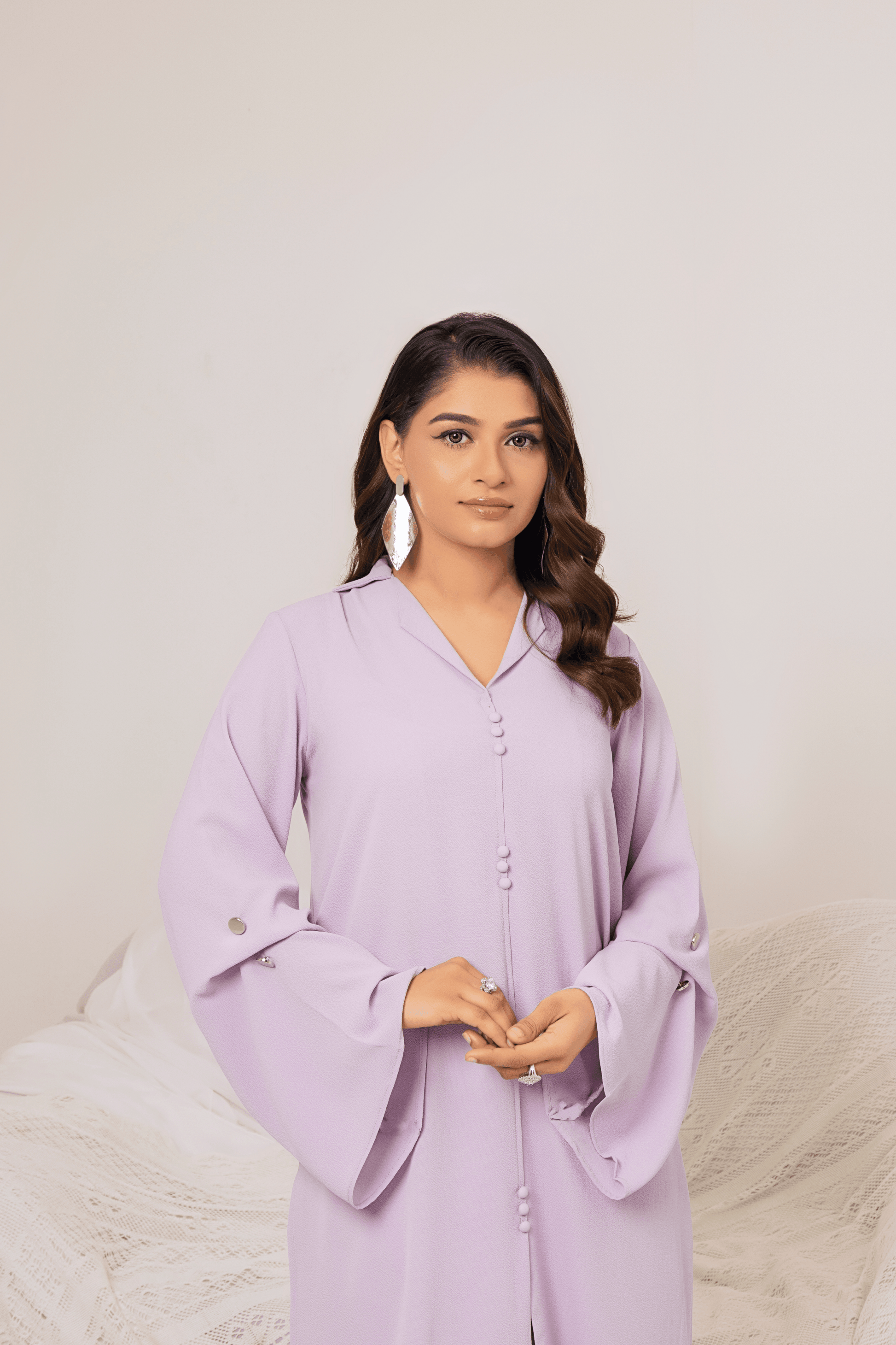 Refined, elegant, and effortlessly captivating—Lavender is designed to make you stand out. Crafted from premium crepe fabric, this one-piece dress drapes beautifully, offering comfort with a touch of sophistication. Its solid lilac hue exudes a sense of serenity and poise, making it perfect for brunches, casual gatherings, and festive occasions. The lightweight and breathable fabric ensures ease of wear throughout the seasons, keeping you stylish with minimal effort.