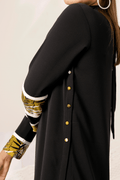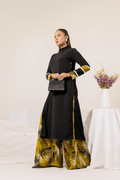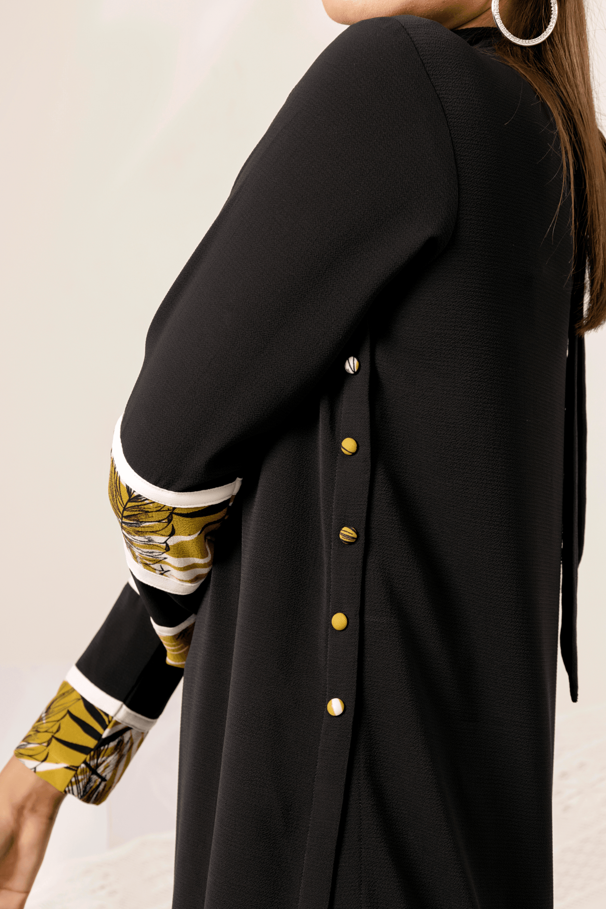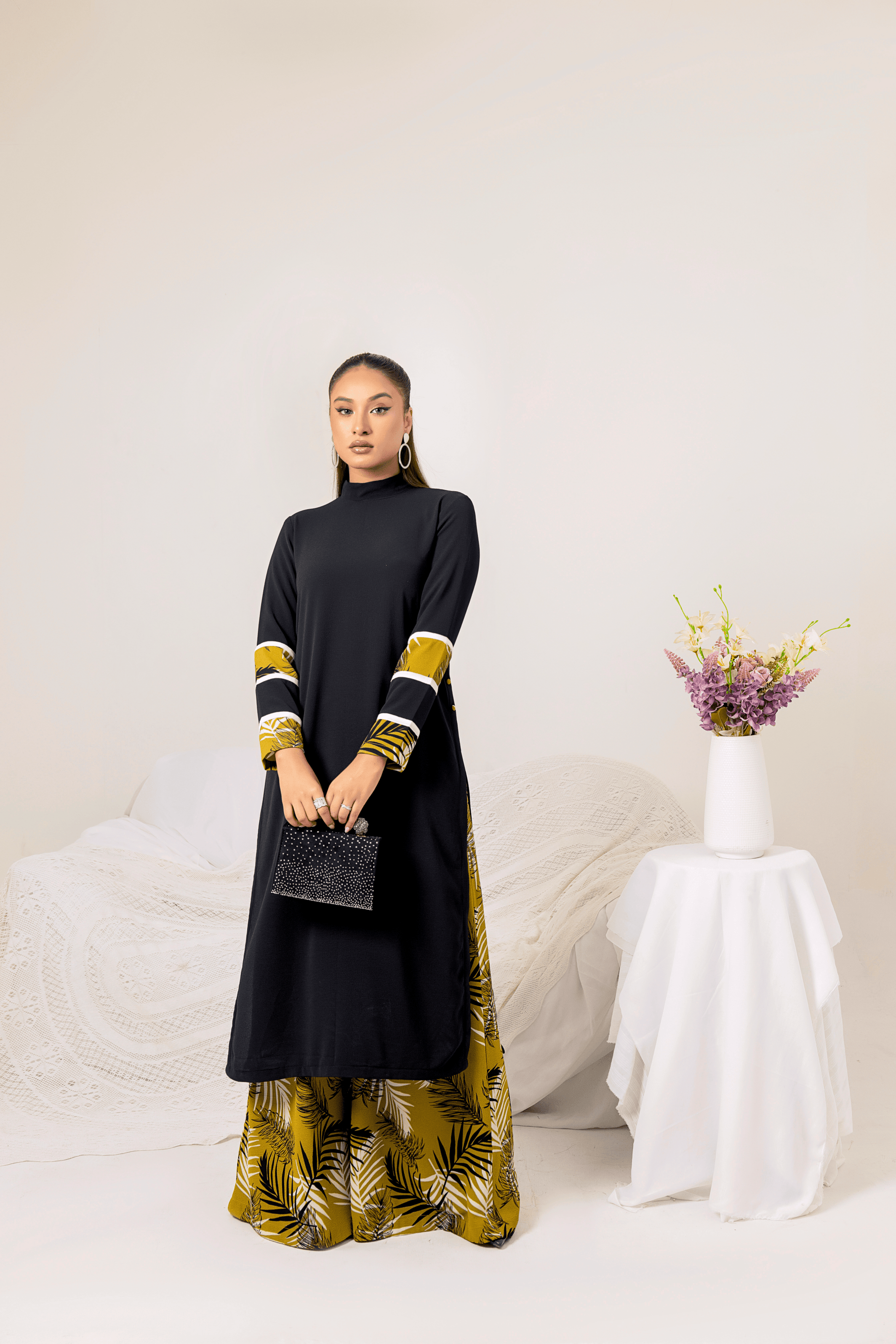 The contrasting black and olive hues create a bold yet refined statement, perfect for evening affairs, festive celebrations, and chic daytime elegance. With a lightweight and breathable texture, Midnight Olive guarantees all-day comfort while keeping your look polished and poised.